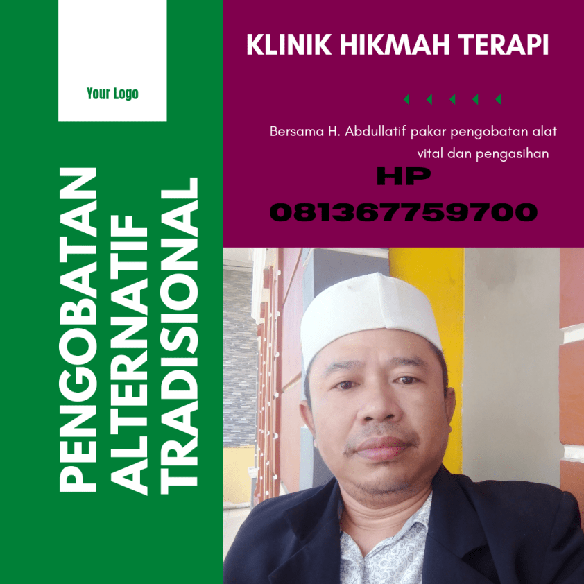 PENGOBATAN H. ABDULLATIF – telah berpengalaman puluhan tahun membantu mengobati berbagai keluhan pria & wanita , beliau memiliki ilmu HIKMAH warisan dari orang tuanya yaitu abah ILYAS, sejak tahun 1999. Dan juga hasil penemuan Sendiri, sejak remaja Rajin melakukan (experimen) meracik ramuan dari unsur hewani dan nabati, sampai pada kesimpulan bahwa ramuan yang ditemui benar benar manjur sudah teruji dan luar biasa. Makanya beliau berani membuka peraktek pengobatan karena beliau sudah mampu dengan pengalaman yang sudah teruji, juga sudah memiliki izin dari dinas kesehatan propinsi banten. Untuk keluhan kaum pria diantaranya impotensi, ejekulasidiniKurang keras tidak tahan lamaLoyo kurang bergairahCepat keluar, peltuSepilis Hernia Gatal-gatalMati total karena diabetes atau penyakit lainnnyaAlat vital bengkok supaya lurusMenghilangkan silikonMemaksimalkan ukuran alat vitalUkuran 15,cm/diameter 4cm17cm, diameter 5,cm 20,cm /6cm Pengobatan Yang beliau lakukan adalah terapi pemijatan, sebagai pembetulan simpul sarafnya, serta membangkitkan urat -urat yang lemah dan juga pengembangan UKURAN, Menggunakan ramuan khusus buat keperkasan pria juga dibantu dengan sarana Doa -doa agar menyempurnakan pengobatan serta mendapatkan hasil yang diinginkan Setiap pasien. Hasilnya bisa dirasakan ditempat, alami aman tanpa efek samping Permanen untuk seumur hidup. Proses pengobatan hanya 30,menit setelah diobati pasien akan diberikan ramuan obat untuk perawatan dirumah, selama 15,hari disesuaikan dengan keluhan masing masing setiap pasien yang berobat. Banyak pasien yang merasa puas langsung ditangani oleh h. Abdullatif pewaris ilmu ABAH ILYAS, sudah menjadi gunjingan bahan pembicaraan setiap kaum pria. Bahkan juga pasien yang sudah Gagal berobat ditempat lain pun ikut diobati kembali. Dan juga pak h. Abdullatif membantu menuntaskan masalah, karir, usaha, bisnis pekerjaan, keharmonisan rumah tangga, dll